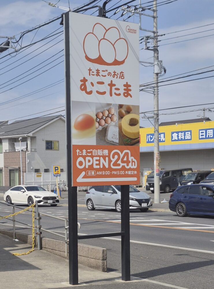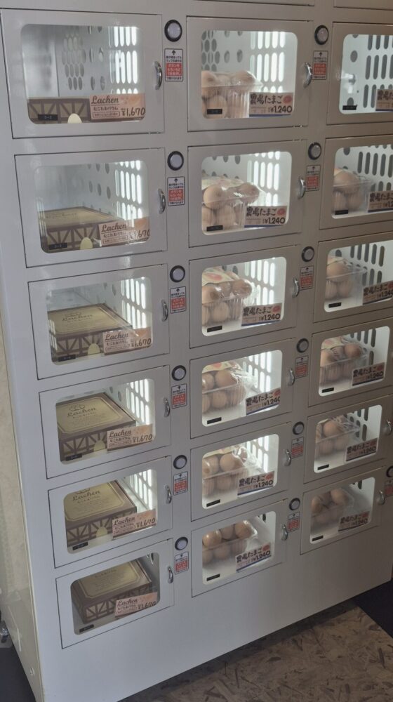 卵の自動販売機がおいてあり、24時間いつでも買えるのもありがたい。